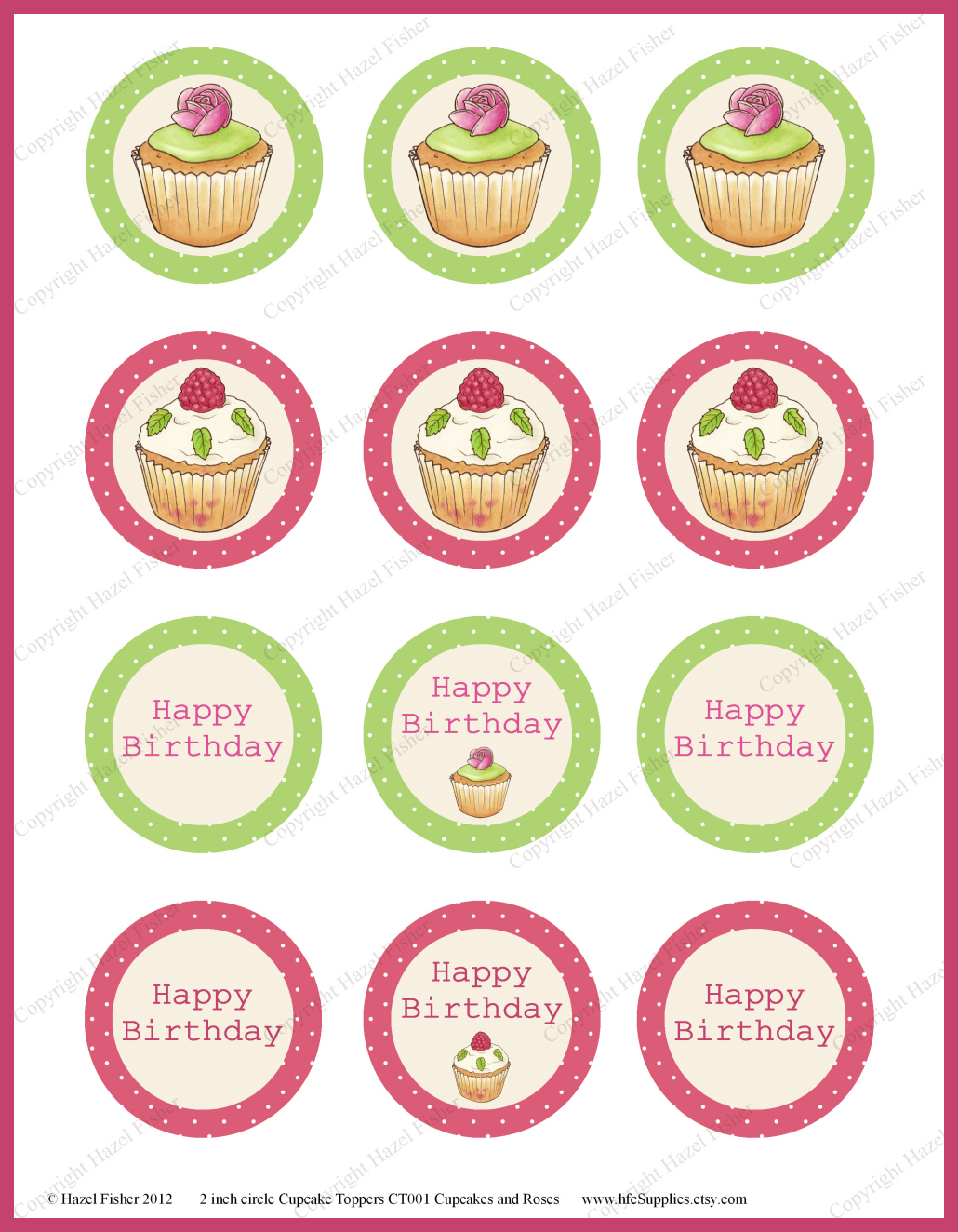 These printable cupcake toppers come as a high resolution 300dpi file for you to print and make yourself. The sheet measures 8.5 x 11 inches (approx. A4) and each circle is a little over 2 inches in diameter, so you can either hand cut them or use a 2 inch circle punch without leaving a white border.